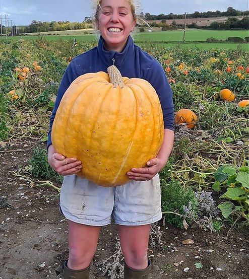 As you can tell she is very happy growing her pumpkins and is enthusiastic about her farm produce.